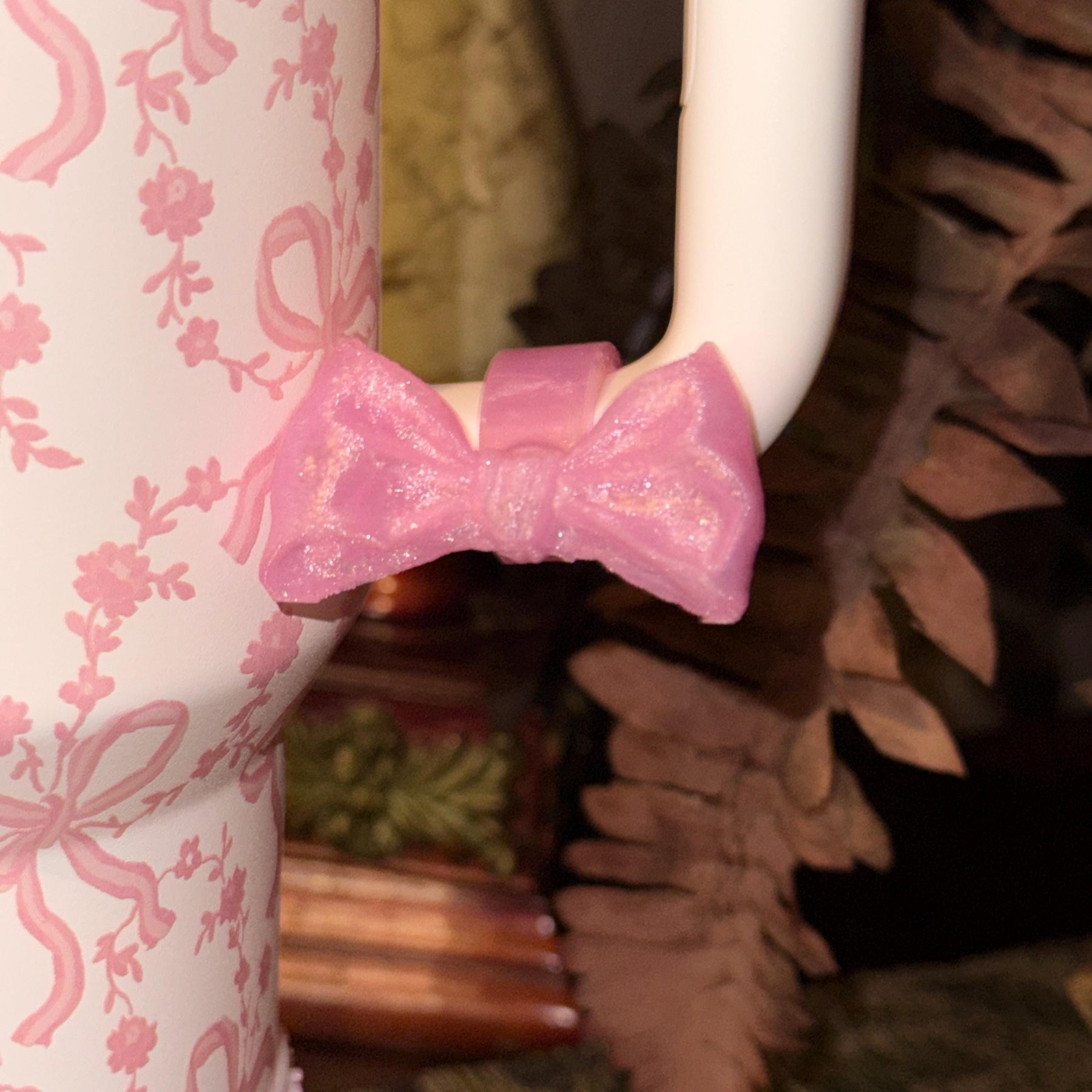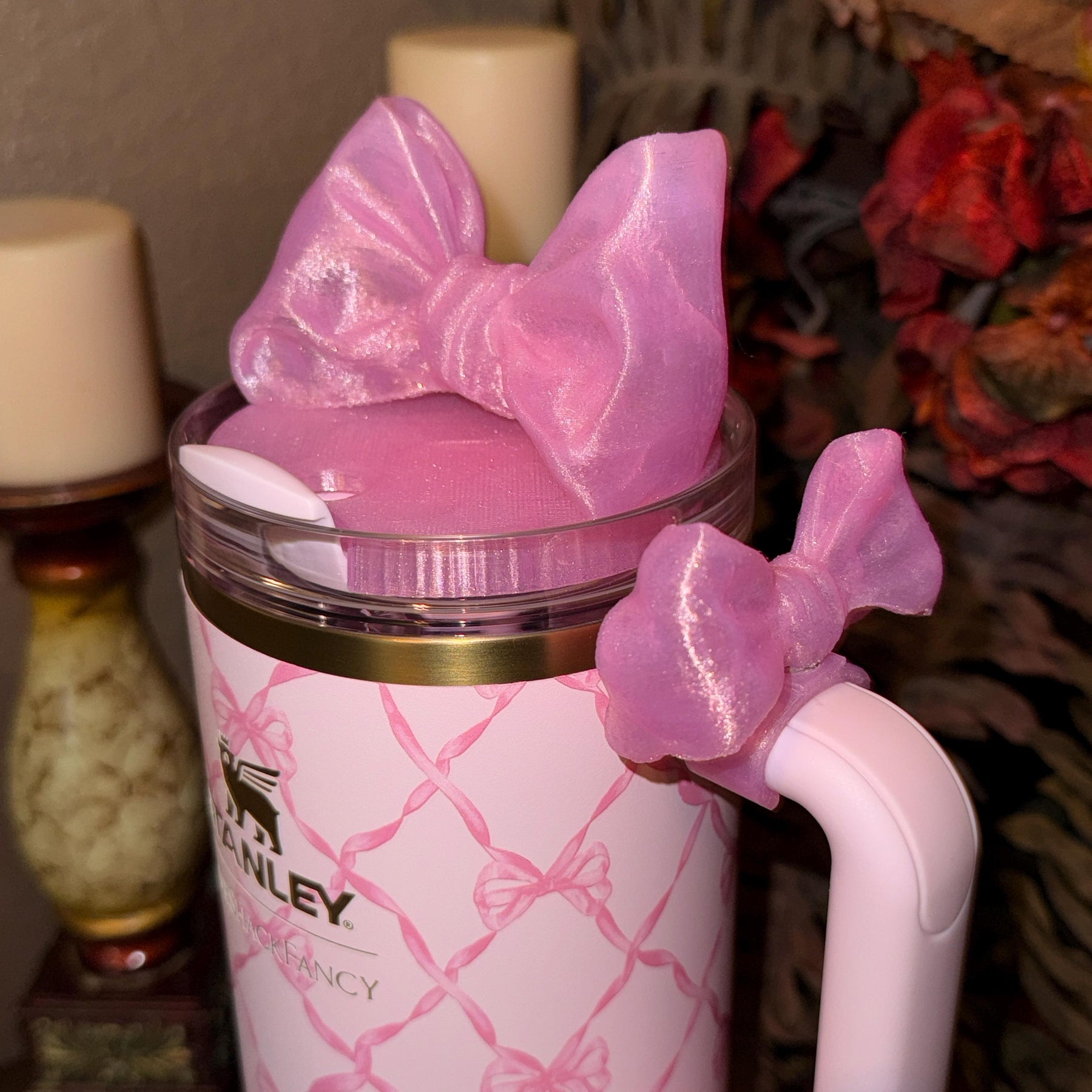 NEW Pink Shimmer LSF Couquette Ribbon Bow Tumbler Boot, lid topper, handle charms, Fit the Love Shack Fancy Stanley, Unique Accessories