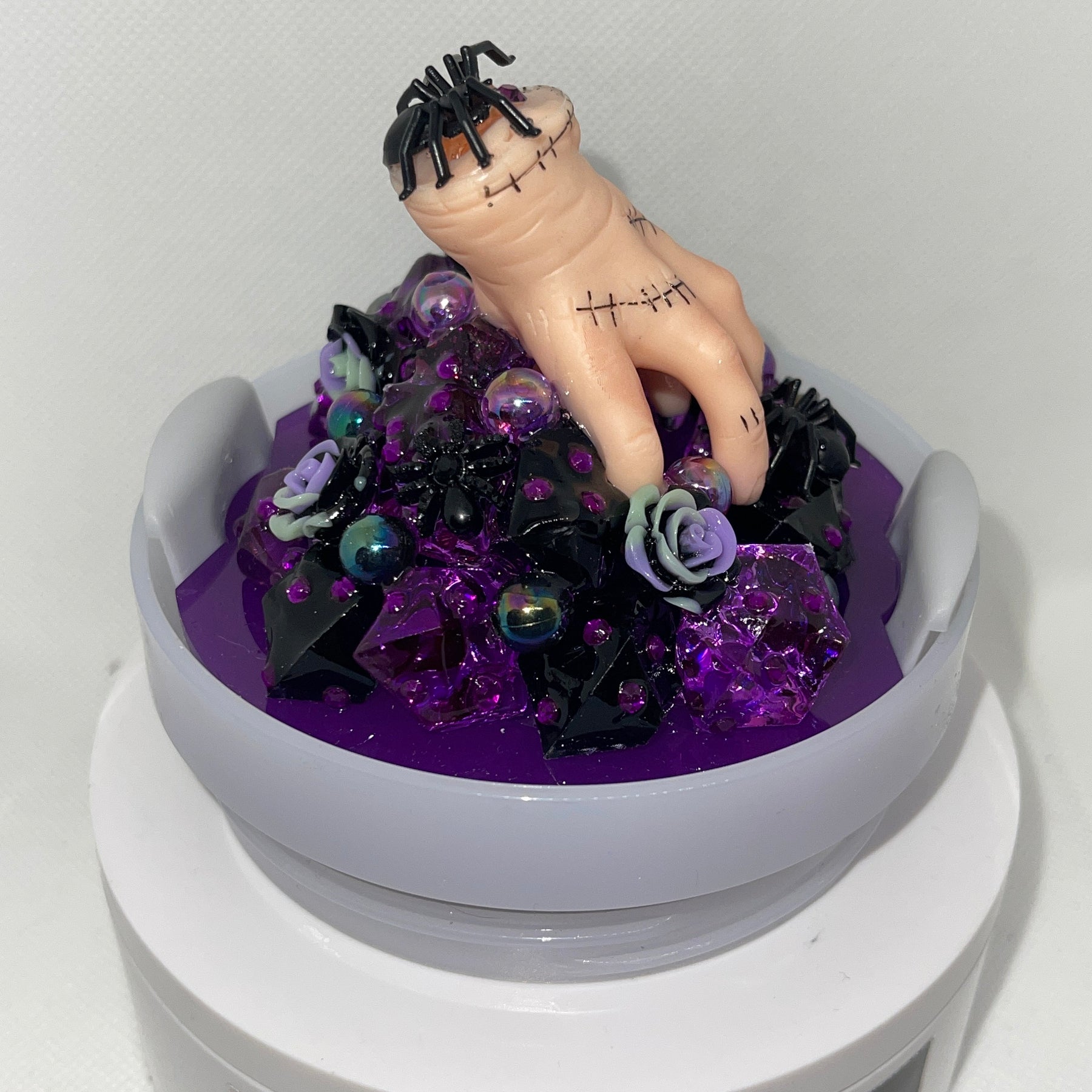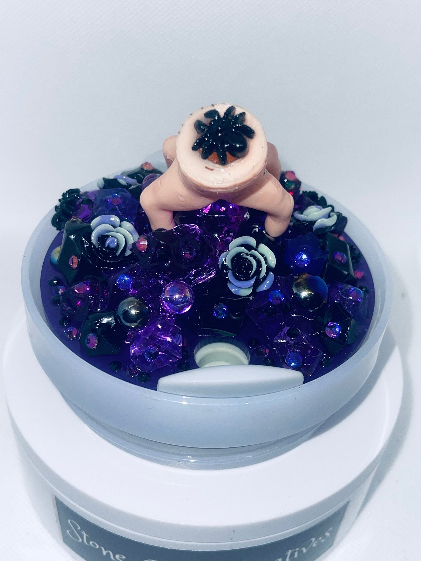 🖤💜 These toppers have a variety of embellishments on a topper plate that will attach to the top of your own lid.