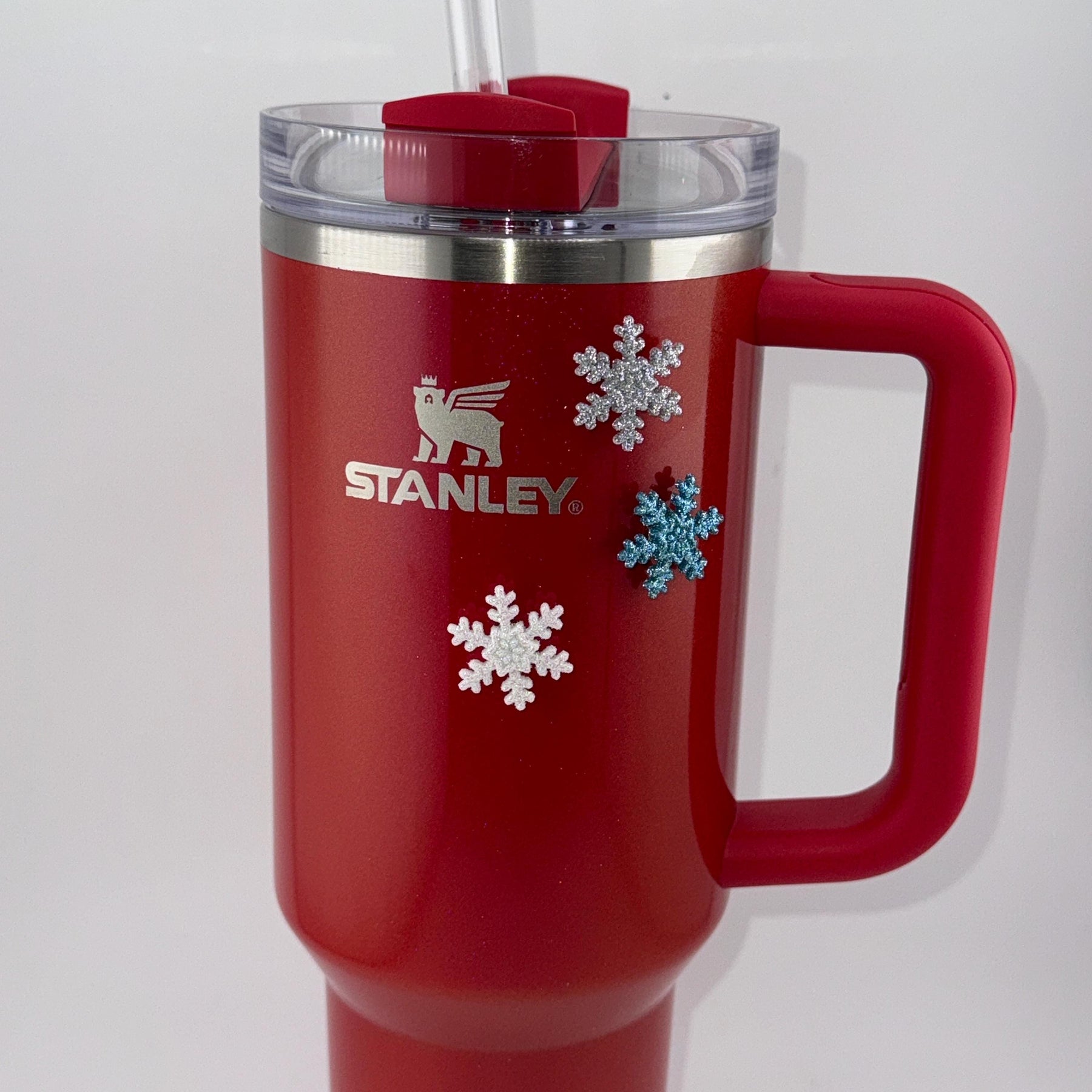 IMPORTANT NOTE - Please read before purchasing - Each magnet has a strong neodymium disc on the back. While these magnets are powerful, magnetic surfaces can vary in strength. You may find a firmer hold on some surfaces while not as strong on others. For tumbler use, These magnets will not stick to surfaces with an overlay or coating like glitter, epoxy, or other special coatings. We noted that the magnets work better on the shiny Stanley tumblers vs. ones that are matte or have an embossed coating on them. These surfaces still have a magnetic bond over these overlays, but it will be a lighter magnetic bond and the items may likely not hold well and fall off. PLEASE KEEP THIS IN MIND BEFORE PURCHASING.