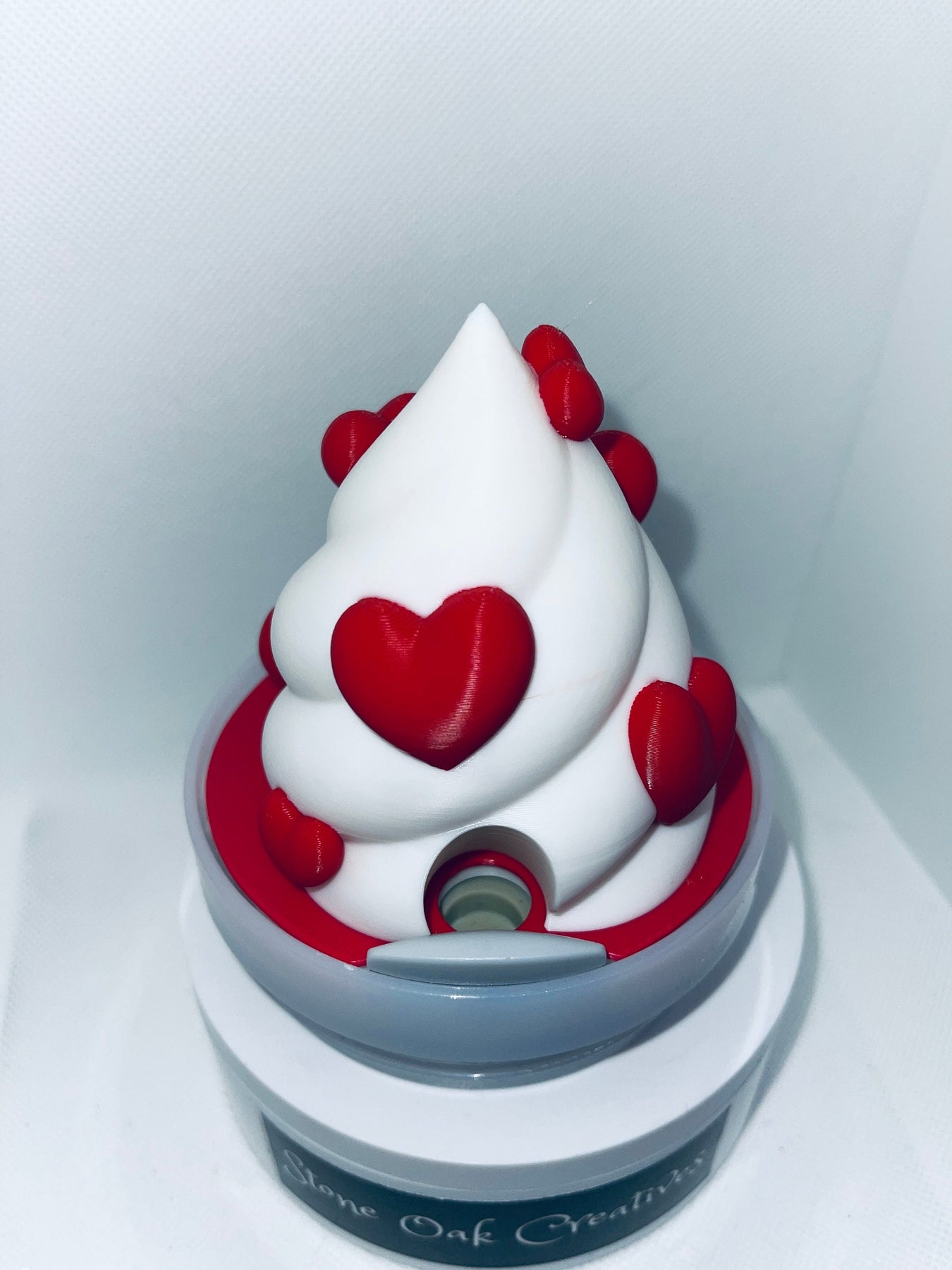 These are 3D printed using high quality filament and securely attached with a base that fits nicely on top of your own lid.