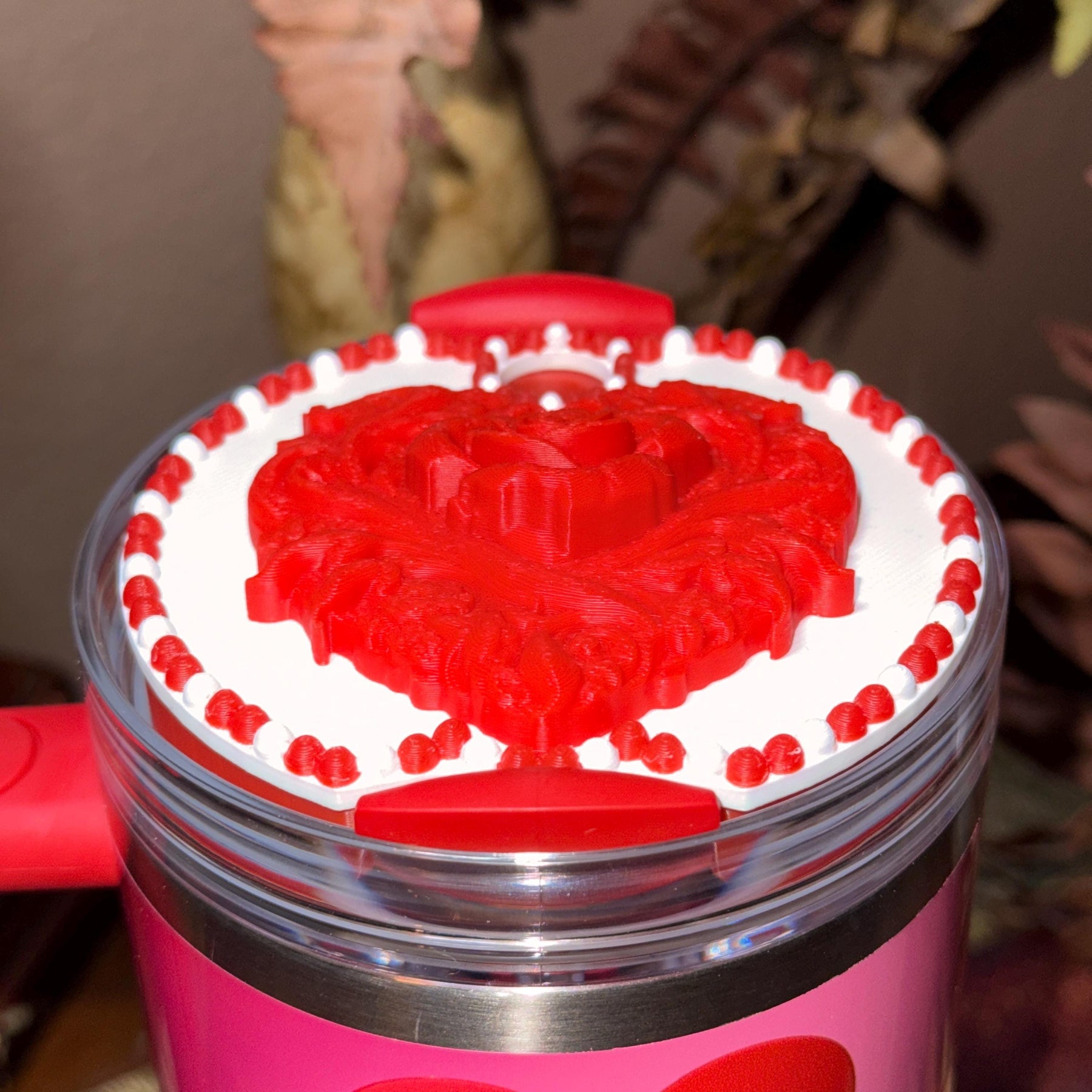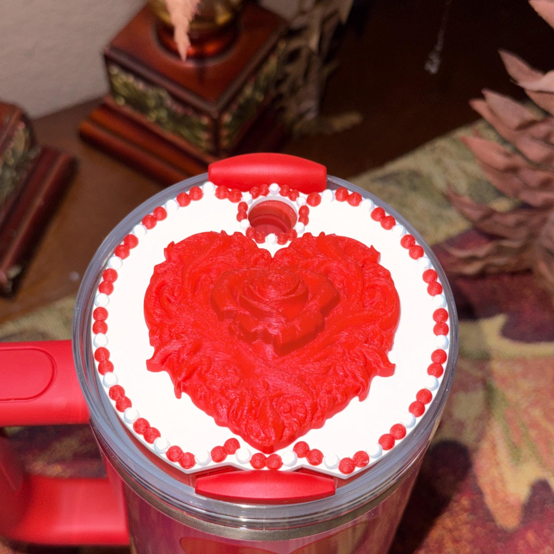 Valentine Rose Heart Tumbler Topper, Red White Pink, for 20 30 40 oz Stanley Quencher, 3D Decorative Lid minimalist unique gift