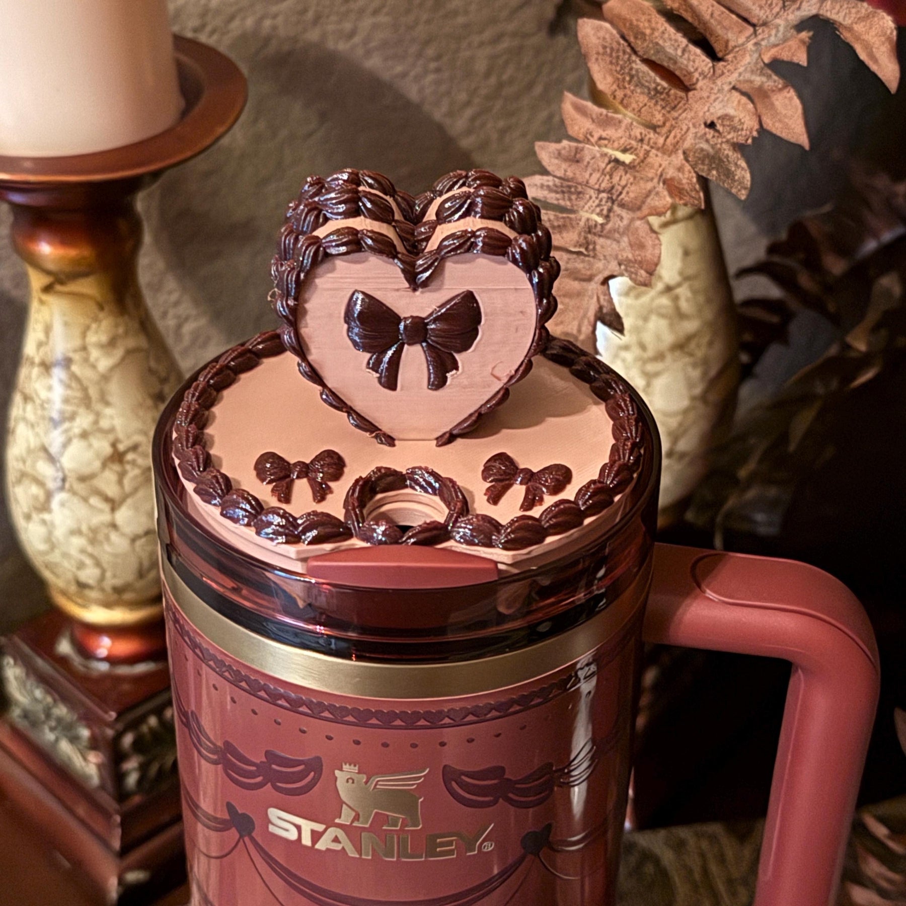 Red Velvet Valentine Cake Heart Tumbler Boot, Halo, Lid Toppers, Straw Topper Slider Buddy, Protective Sleeve, fits 20 30 or 40 oz Stanley